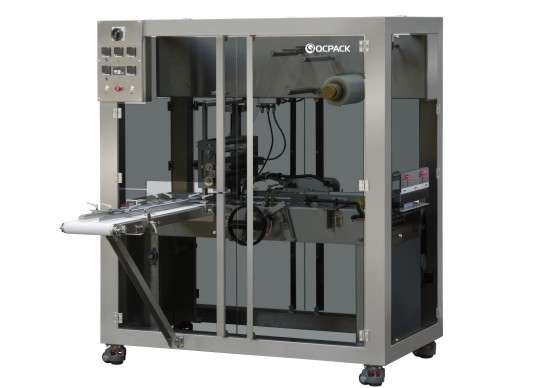本機(jī)適用于各行業(yè)中的單件盒式物品的薄膜自動(dòng)包裝(帶金拉線)。本機(jī)整體機(jī)架采用碳鋼噴塑、落地多開安全門結(jié)構(gòu),采用平推式推盒結(jié)構(gòu),更換模具簡單,調(diào)節(jié)距離多處采用手搖式調(diào)節(jié)尺寸,大大節(jié)省換模具時(shí)間,固定膜處采用氣漲軸輥固定,使換膜更簡單、快速。